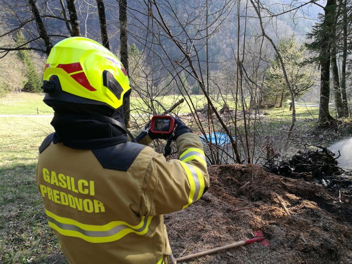 Danes smo na pomoč priskočili občanu v Potočah. Z vodo smo zalili tlečo žagovino, ter s termokamero preventivno pregledali okolico.