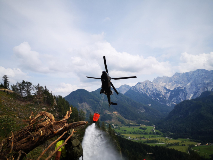 Danes smo skupaj s kolegi iz Gasilsko reševalne službe Kranj in helikopterjem Slovenske vojske priskočili na pomoč kolegom iz PGD Jezersko. Veter je ponovno razplamtel žarišča na pogorišču požara pod Roblekovo planino.