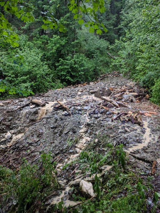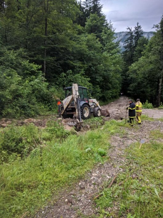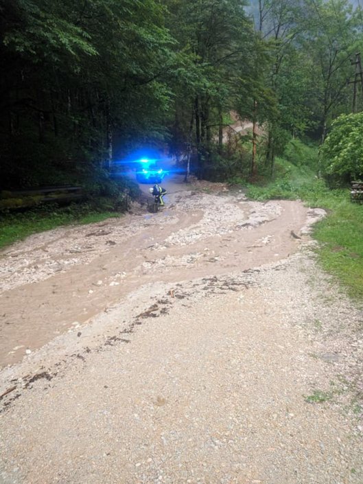 Vrnili smo se iz intervencije v naselju Kokra, ki jo je prizadelo neurje z obilnimi padavinami in celo točo. Posredovali smo na večih lokacijah. V večini primerov so glavno vlogo odigrali delovni stroji, ki so komaj zmogli sproti odstranjevati naplavine, katere je prinašala voda. Na delu ostaja 5 strojev. Zaradi debelega nanosa kamenja ostaja neprevozna cesta proti Suhadolniku.
